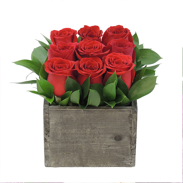 Razzle Dazzle 9 Roses in wooden box